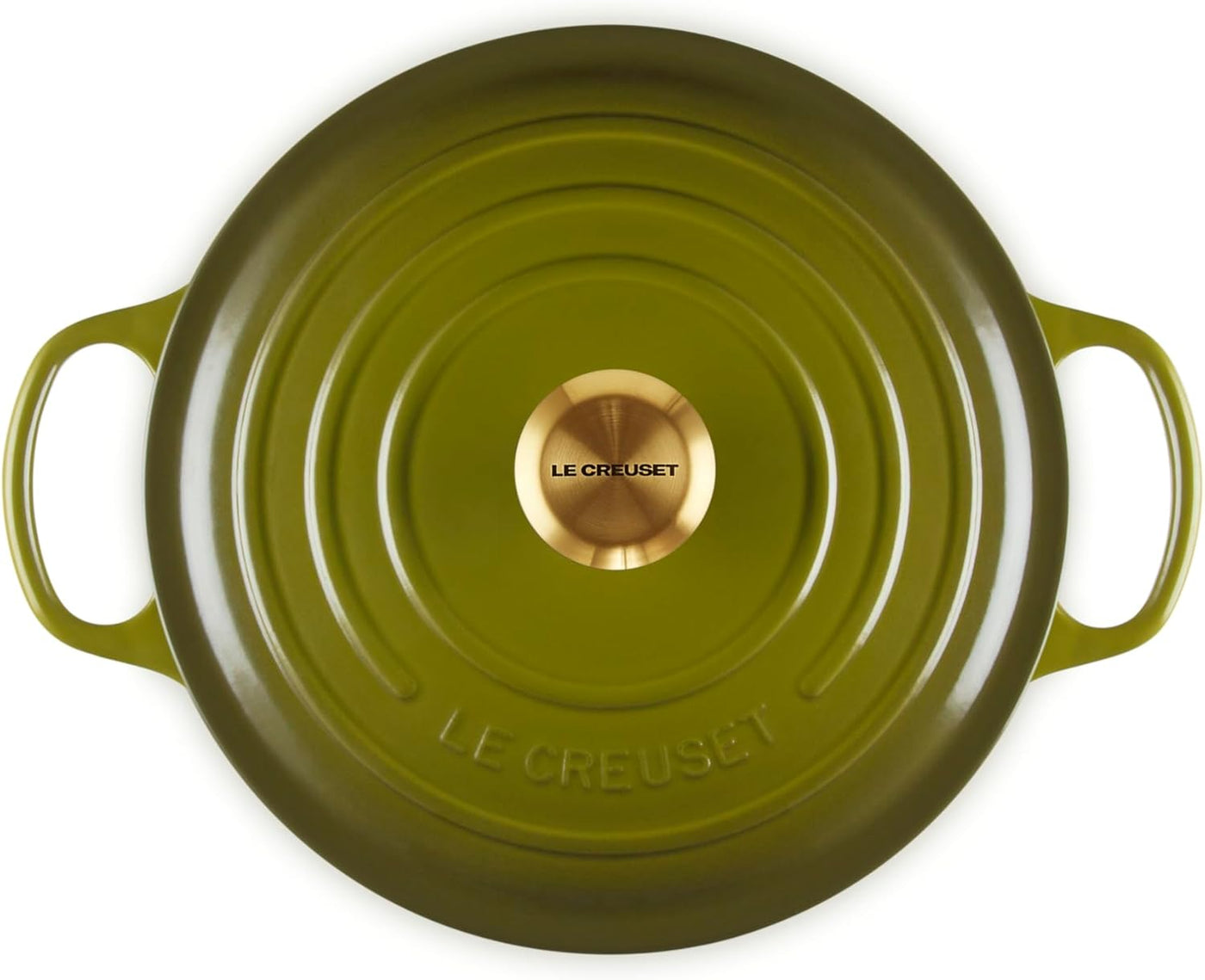 {"id":8920355012836,"title":"Le Creuset 6 1\/2 Qt. Enameled Cast Iron Signature Deep Round Dutch Oven w\/Gold Knob - Olive","handle":"le-creuset-6-1-2-qt-enameled-cast-iron-signature-deep-round-dutch-oven-w-gold-knob-olive-21195-026-411-05-1","description":"\u003cdiv class=\"product-info\"\u003e\n\u003ch2\u003eDescription\u003c\/h2\u003e\n\u003cp\u003eThe iconic Le Creuset Dutch Oven is indispensable in the kitchens of home cooks and professional chefs alike. Designed with extra depth for even more possibilities, the Round Deep Oven reimagines the kitchen classic. Its tall sides and extra depth help contain splatters and reduce boil-overs while locking in moisture and flavor as your ingredients simmer. With added capacity that doesn’t crowd your stovetop, it’s perfect for everything from golden fried chicken to slow-simmered soups, hearty stews and pasta dinners shared with family and friends.\u003c\/p\u003e\n\u003ch2\u003eFeatures\u003c\/h2\u003e\n\u003cul\u003e\n\u003cli\u003eEnameled cast iron delivers superior heat distribution and retention\u003c\/li\u003e\n\u003cli\u003eReady to use, requires no seasoning\u003c\/li\u003e\n\u003cli\u003eEasy-to-clean and durable enamel resists dulling, staining, chipping and cracking\u003c\/li\u003e\n\u003cli\u003eLight colored smooth interior enamel allows easy monitoring of cooking progress\u003c\/li\u003e\n\u003cli\u003eTight-fitting lids are specially designed to circulate steam and return moisture back to the food\u003c\/li\u003e\n\u003cli\u003eTall sides and added depth contain splatters and reduce boil overs without taking up extra stovetop space\u003c\/li\u003e\n\u003cli\u003eErgonomic knobs and handles are designed for easy lifting\u003c\/li\u003e\n\u003cli\u003eCompatible with all cooktops and oven-safe up to 500°F\u003c\/li\u003e\n\u003cli\u003eSafe for dishwasher and metal utensils\u003c\/li\u003e\n\u003c\/ul\u003e\n\u003ch2\u003eSpecifications\u003c\/h2\u003e\n\u003cul\u003e\n\u003cli\u003eMaterial: Enameled Cast Iron\u003c\/li\u003e\n\u003cli\u003eHeat Source: Ceramic, Electric, Gas, Halogen, Induction, Oven\u003c\/li\u003e\n\u003cli\u003ePiece Count: 2\u003c\/li\u003e\n\u003cli\u003eCleaning: Dishwasher-Safe\u003c\/li\u003e\n\u003cli\u003eCountry Of Origin: France\u003c\/li\u003e\n\u003cli\u003eWarranty: Limited Lifetime Warranty\u003c\/li\u003e\n\u003c\/ul\u003e\n\u003c\/div\u003e - 21195-026-411-05-1 - 1 - C49","published_at":"2026-02-17T15:54:27-05:00","created_at":"2026-02-17T15:54:27-05:00","vendor":"Le Creuset","type":"Dutch Ovens","tags":["Brand_Le Creuset","Category_Dutch Ovens \u0026 Braisers","Color_Olive","Country_","Customization_","ItemType_Dutch Ovens","Sale_"],"price":28995,"price_min":28995,"price_max":28995,"available":true,"price_varies":false,"compare_at_price":46000,"compare_at_price_min":46000,"compare_at_price_max":46000,"compare_at_price_varies":false,"variants":[{"id":47919988637924,"title":"Default Title","option1":"Default Title","option2":null,"option3":null,"sku":"21195-026-411-05-1","requires_shipping":true,"taxable":true,"featured_image":null,"available":true,"name":"Le Creuset 6 1\/2 Qt. Enameled Cast Iron Signature Deep Round Dutch Oven w\/Gold Knob - Olive","public_title":null,"options":["Default Title"],"price":28995,"weight":6804,"compare_at_price":46000,"inventory_quantity":1,"inventory_management":"shopify","inventory_policy":"deny","barcode":"024147348733","requires_selling_plan":false,"selling_plan_allocations":[]}],"images":["\/\/www.chefsarsenal.com\/cdn\/shop\/files\/61nzjLxhoBL._AC_SL1500.jpg?v=1771433720","\/\/www.chefsarsenal.com\/cdn\/shop\/files\/61tJUwWV6ZL._AC_SL1500.jpg?v=1771433721","\/\/www.chefsarsenal.com\/cdn\/shop\/files\/61sMgJYPDsL._AC_SL1500.jpg?v=1771433721","\/\/www.chefsarsenal.com\/cdn\/shop\/files\/816KdSwV0BL._AC_SL1500.jpg?v=1771433730"],"featured_image":"\/\/www.chefsarsenal.com\/cdn\/shop\/files\/61nzjLxhoBL._AC_SL1500.jpg?v=1771433720","options":["Title"],"media":[{"alt":null,"id":68640359547108,"position":1,"preview_image":{"aspect_ratio":1.304,"height":1150,"width":1500,"src":"\/\/www.chefsarsenal.com\/cdn\/shop\/files\/61nzjLxhoBL._AC_SL1500.jpg?v=1771433720"},"aspect_ratio":1.304,"height":1150,"media_type":"image","src":"\/\/www.chefsarsenal.com\/cdn\/shop\/files\/61nzjLxhoBL._AC_SL1500.jpg?v=1771433720","width":1500},{"alt":null,"id":68640359579876,"position":2,"preview_image":{"aspect_ratio":1.23,"height":1220,"width":1500,"src":"\/\/www.chefsarsenal.com\/cdn\/shop\/files\/61tJUwWV6ZL._AC_SL1500.jpg?v=1771433721"},"aspect_ratio":1.23,"height":1220,"media_type":"image","src":"\/\/www.chefsarsenal.com\/cdn\/shop\/files\/61tJUwWV6ZL._AC_SL1500.jpg?v=1771433721","width":1500},{"alt":null,"id":68640359612644,"position":3,"preview_image":{"aspect_ratio":1.272,"height":1179,"width":1500,"src":"\/\/www.chefsarsenal.com\/cdn\/shop\/files\/61sMgJYPDsL._AC_SL1500.jpg?v=1771433721"},"aspect_ratio":1.272,"height":1179,"media_type":"image","src":"\/\/www.chefsarsenal.com\/cdn\/shop\/files\/61sMgJYPDsL._AC_SL1500.jpg?v=1771433721","width":1500},{"alt":null,"id":68640360333540,"position":4,"preview_image":{"aspect_ratio":1.777,"height":844,"width":1500,"src":"\/\/www.chefsarsenal.com\/cdn\/shop\/files\/816KdSwV0BL._AC_SL1500.jpg?v=1771433730"},"aspect_ratio":1.777,"height":844,"media_type":"image","src":"\/\/www.chefsarsenal.com\/cdn\/shop\/files\/816KdSwV0BL._AC_SL1500.jpg?v=1771433730","width":1500}],"requires_selling_plan":false,"selling_plan_groups":[],"content":"\u003cdiv class=\"product-info\"\u003e\n\u003ch2\u003eDescription\u003c\/h2\u003e\n\u003cp\u003eThe iconic Le Creuset Dutch Oven is indispensable in the kitchens of home cooks and professional chefs alike. Designed with extra depth for even more possibilities, the Round Deep Oven reimagines the kitchen classic. Its tall sides and extra depth help contain splatters and reduce boil-overs while locking in moisture and flavor as your ingredients simmer. With added capacity that doesn’t crowd your stovetop, it