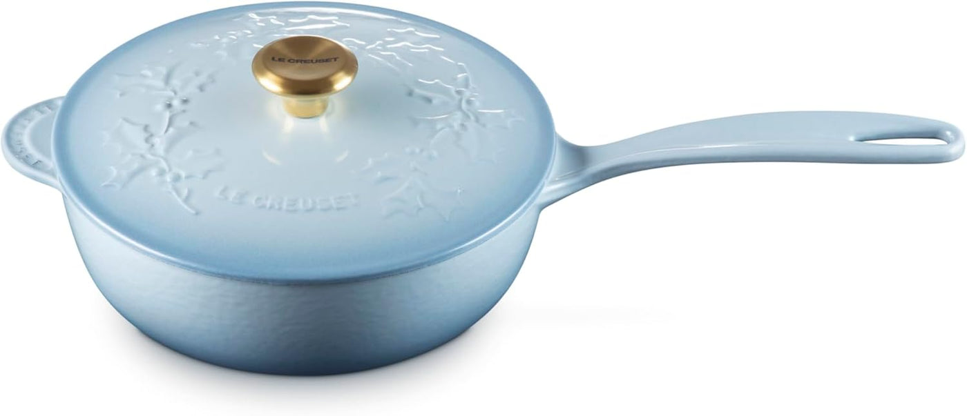 {"id":8777684025572,"title":"Le Creuset 2 1\/4 Qt. Enameled Cast Iron Saucier w\/Holly Embossed Lid \u0026 Gold Knob - Coastal Blue","handle":"le-creuset-2-1-4-qt-enameled-cast-iron-saucier-w-holly-embossed-lid-and-gold-knob-coastal-blue-21993-021-420-05-1","description":"\u003cp\u003eThe Holly Collection Traditional Saucier features an elegantly scrolled and embossed holly leaf design that will spread good cheer and joyful style year after year. A chef’s favorite, the Saucier has a smooth contoured interior that is optimal for making merry sauces, side dishes and sautéing vegetables. Sloping sides and a rounded bottom facilitate stirring and whisking, while the broad surface area allows liquids to evaporate quickly. Crafted from our legendary enameled cast iron, it has exceptional heat distribution and retention qualities to lock in flavor and moisture and keep dishes warm from stove to oven to table. The festive, colorful enameled surface minimizes sticking and staining, requires no pre-seasoning, and is easy-to-clean.\u003c\/p\u003e\u003ch5\u003eFeatures\u003c\/h5\u003e\u003cul\u003e\n\u003cli\u003eEnameled cast iron delivers superior heat distribution and retention\u003c\/li\u003e\n\u003cli\u003eReady to use, requires no seasoning\u003c\/li\u003e\n\u003cli\u003eEasy-to-clean and durable enamel resists dulling, staining, chipping and cracking\u003c\/li\u003e\n\u003cli\u003eLight colored smooth interior enamel allows easy monitoring of cooking progress\u003c\/li\u003e\n\u003cli\u003eTight-fitting lids are specially designed to circulate steam and return moisture back to the food\u003c\/li\u003e\n\u003cli\u003eErgonomic knobs and handles are designed for easy lifting\u003c\/li\u003e\n\u003cli\u003eLightest weight cast iron by quart on the market\u003c\/li\u003e\n\u003cli\u003eCompatible with all cooktops and oven-safe up to 500°F\u003c\/li\u003e\n\u003cli\u003eHand wash with warm, soapy water\u003c\/li\u003e\n\u003c\/ul\u003e\u003ch5\u003eSpecifications\u003c\/h5\u003e\u003cul\u003e\n\u003cli\u003eMaterial: Enameled Cast Iron\u003c\/li\u003e\n\u003cli\u003eHeat Source: Ceramic, Electric, Gas, Halogen, Induction, Oven\u003c\/li\u003e\n\u003cli\u003ePiece Count: 2\u003c\/li\u003e\n\u003cli\u003eCleaning: Hand Wash\u003c\/li\u003e\n\u003cli\u003eCountry Of Origin: France\u003c\/li\u003e\n\u003cli\u003eWarranty: Limited Lifetime Warranty\u003c\/li\u003e\n\u003c\/ul\u003e - 21993-021-420-05-1 - 1 - W71","published_at":"2025-10-23T15:45:55-04:00","created_at":"2025-10-23T15:45:55-04:00","vendor":"Le Creuset","type":"Sauciers","tags":["Brand_Le Creuset","Category_Saucepans \u0026 Sauciers","Color_Coastal Blue","Country_","Customization_","ItemType_Sauciers","Sale_"],"price":30995,"price_min":30995,"price_max":30995,"available":true,"price_varies":false,"compare_at_price":37200,"compare_at_price_min":37200,"compare_at_price_max":37200,"compare_at_price_varies":false,"variants":[{"id":46893203816676,"title":"Default Title","option1":"Default Title","option2":null,"option3":null,"sku":"21993-021-420-05-1","requires_shipping":true,"taxable":true,"featured_image":null,"available":true,"name":"Le Creuset 2 1\/4 Qt. Enameled Cast Iron Saucier w\/Holly Embossed Lid \u0026 Gold Knob - Coastal Blue","public_title":null,"options":["Default Title"],"price":30995,"weight":4082,"compare_at_price":37200,"inventory_quantity":1,"inventory_management":"shopify","inventory_policy":"deny","barcode":"024147345091","requires_selling_plan":false,"selling_plan_allocations":[]}],"images":["\/\/www.chefsarsenal.com\/cdn\/shop\/files\/51Xq0VS_zQL._AC_SL1500.jpg?v=1761575534","\/\/www.chefsarsenal.com\/cdn\/shop\/files\/51CpdQtJdXL._AC_SL1500.jpg?v=1761575534","\/\/www.chefsarsenal.com\/cdn\/shop\/files\/51m0HebfcFL._AC_SL1500.jpg?v=1761575534","\/\/www.chefsarsenal.com\/cdn\/shop\/files\/51iGQIyFQJL._AC_SL1500.jpg?v=1761575534","\/\/www.chefsarsenal.com\/cdn\/shop\/files\/81fHTU55PaL._AC_SL1500.jpg?v=1761575534"],"featured_image":"\/\/www.chefsarsenal.com\/cdn\/shop\/files\/51Xq0VS_zQL._AC_SL1500.jpg?v=1761575534","options":["Title"],"media":[{"alt":null,"id":67048040268004,"position":1,"preview_image":{"aspect_ratio":2.322,"height":646,"width":1500,"src":"\/\/www.chefsarsenal.com\/cdn\/shop\/files\/51Xq0VS_zQL._AC_SL1500.jpg?v=1761575534"},"aspect_ratio":2.322,"height":646,"media_type":"image","src":"\/\/www.chefsarsenal.com\/cdn\/shop\/files\/51Xq0VS_zQL._AC_SL1500.jpg?v=1761575534","width":1500},{"alt":null,"id":67048040300772,"position":2,"preview_image":{"aspect_ratio":1.801,"height":833,"width":1500,"src":"\/\/www.chefsarsenal.com\/cdn\/shop\/files\/51CpdQtJdXL._AC_SL1500.jpg?v=1761575534"},"aspect_ratio":1.801,"height":833,"media_type":"image","src":"\/\/www.chefsarsenal.com\/cdn\/shop\/files\/51CpdQtJdXL._AC_SL1500.jpg?v=1761575534","width":1500},{"alt":null,"id":67048040333540,"position":3,"preview_image":{"aspect_ratio":1.854,"height":809,"width":1500,"src":"\/\/www.chefsarsenal.com\/cdn\/shop\/files\/51m0HebfcFL._AC_SL1500.jpg?v=1761575534"},"aspect_ratio":1.854,"height":809,"media_type":"image","src":"\/\/www.chefsarsenal.com\/cdn\/shop\/files\/51m0HebfcFL._AC_SL1500.jpg?v=1761575534","width":1500},{"alt":null,"id":67048040366308,"position":4,"preview_image":{"aspect_ratio":3.341,"height":449,"width":1500,"src":"\/\/www.chefsarsenal.com\/cdn\/shop\/files\/51iGQIyFQJL._AC_SL1500.jpg?v=1761575534"},"aspect_ratio":3.341,"height":449,"media_type":"image","src":"\/\/www.chefsarsenal.com\/cdn\/shop\/files\/51iGQIyFQJL._AC_SL1500.jpg?v=1761575534","width":1500},{"alt":null,"id":67048040399076,"position":5,"preview_image":{"aspect_ratio":1.5,"height":1000,"width":1500,"src":"\/\/www.chefsarsenal.com\/cdn\/shop\/files\/81fHTU55PaL._AC_SL1500.jpg?v=1761575534"},"aspect_ratio":1.5,"height":1000,"media_type":"image","src":"\/\/www.chefsarsenal.com\/cdn\/shop\/files\/81fHTU55PaL._AC_SL1500.jpg?v=1761575534","width":1500}],"requires_selling_plan":false,"selling_plan_groups":[],"content":"\u003cp\u003eThe Holly Collect