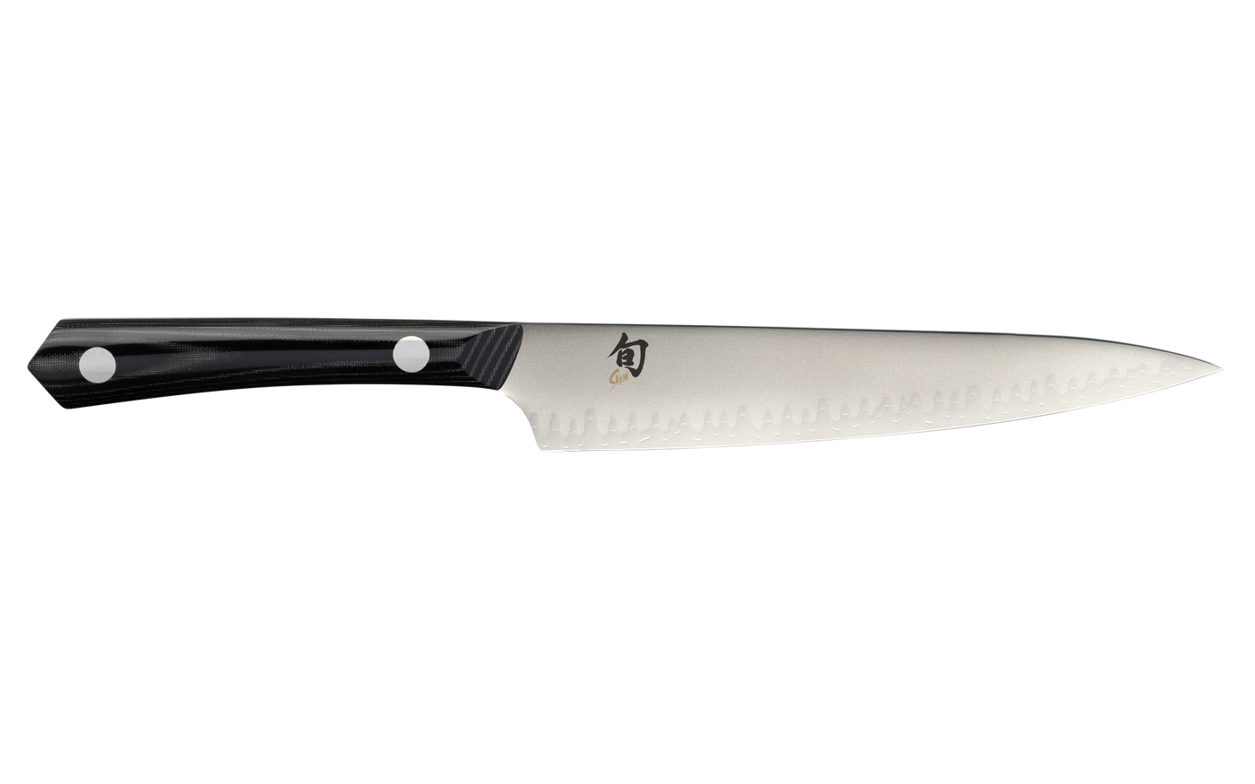 Add a versatile piece to your cutlery collection with this utility knife from Shun that combines function and style. Made with high-carbon Japanese blue steel #2, this knife boasts strength, durability and ease of sharpening so you can enjoy it for years to come. the blade also features stainless steel cladding that prevents food from getting caught on the blade, so you can slice through breads, veggies and more quickly. Plus, the micarta handle resists moisture and offers a comfortable grip. Shun knives blend the hand forging techniques of ancient Japan with modern materials, resulting in state-of-the-art knives with a pedigree that’s centuries old. Each Shun knife still takes at least 100 handcrafted steps to complete and Shun remains true to its ancient heritage of quality. At the same time, Shun takes advantage of thoroughly modern, premium materials and state-of-the-art technology to provide that traditional quality to millions of professional chefs and avid home cooks throughout the world. - VSC0701 - 2 - B9