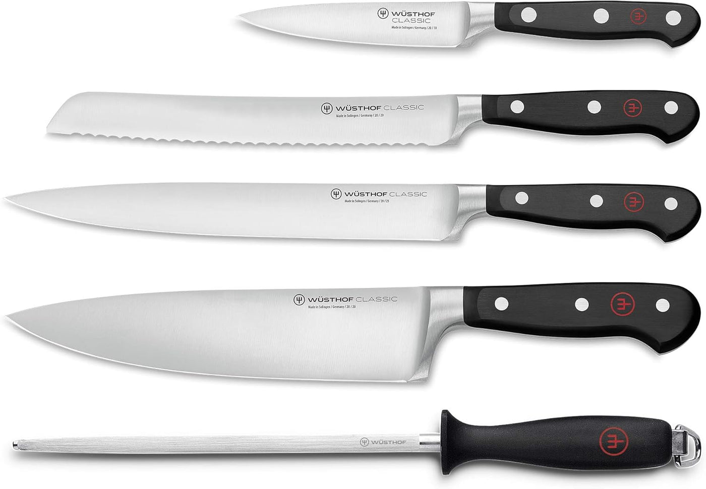 {"id":8709969969380,"title":"Wusthof Classic - 5 Pc. Chef’s Knife Set","handle":"wusthof-classic-chefs-knife-set-1120160501","description":"\u003cdiv class=\"product-details\"\u003e\n\u003ch2\u003eProduct Details\u003c\/h2\u003e\n\u003cp\u003eThe WÜSTHOF Classic 5-Piece Chef's Knife Set is the perfect starter bundle for home cooks and professional chefs alike. With a selection of essential knives and a honing steel, this set equips you for a wide range of kitchen tasks.\u003c\/p\u003e\n\u003cp\u003e\u003cstrong\u003eThe Classic 5-Piece Set includes:\u003c\/strong\u003e\u003c\/p\u003e\n\u003cul\u003e\n\u003cli\u003eClassic 4\" Paring Knife\u003c\/li\u003e\n\u003cli\u003eClassic 8\" Bread Knife\u003c\/li\u003e\n\u003cli\u003eClassic 9\" Carving Knife\u003c\/li\u003e\n\u003cli\u003eClassic 8\" Chef's Knife\u003c\/li\u003e\n\u003cli\u003eClassic 9\" Honing Steel\u003c\/li\u003e\n\u003c\/ul\u003e\n\u003c\/div\u003e\n\u003cdiv class=\"specifications\"\u003e\n\u003ch2\u003eSpecifications\u003c\/h2\u003e\n\u003cul\u003e\n\u003cli\u003e\n\u003cstrong\u003eProduction SKU:\u003c\/strong\u003e 1120160501\u003c\/li\u003e\n\u003cli\u003e\n\u003cstrong\u003eMethod:\u003c\/strong\u003e Forged\u003c\/li\u003e\n\u003cli\u003e\n\u003cstrong\u003eRockwell Hardness:\u003c\/strong\u003e 58 HRC\u003c\/li\u003e\n\u003cli\u003e\n\u003cstrong\u003eCountry of Origin:\u003c\/strong\u003e Germany\u003c\/li\u003e\n\u003cli\u003e\n\u003cstrong\u003eCutlery Type:\u003c\/strong\u003e 5-Piece Chef's Knife Set\u003c\/li\u003e\n\u003cli\u003e\n\u003cstrong\u003eSeries:\u003c\/strong\u003e Classic\u003c\/li\u003e\n\u003c\/ul\u003e\n\u003c\/div\u003e\n\u003cdiv class=\"care-instructions\"\u003e\n\u003ch2\u003eCare Instructions\u003c\/h2\u003e\n\u003cul\u003e\n\u003cli\u003eWash by hand and immediately towel-dry.\u003c\/li\u003e\n\u003cli\u003eAvoid using abrasive sponges or leaving your knife soaking in the sink.\u003c\/li\u003e\n\u003cli\u003eSafely store your knife using a storage solution.\u003c\/li\u003e\n\u003cli\u003eAvoid cutting on hard surfaces such as metal, glass, or hardwoods like bamboo.\u003c\/li\u003e\n\u003cli\u003eRegular honing is essential to keep your knife performing at its best.\u003c\/li\u003e\n\u003cli\u003eSharpen as needed using a whetstone, sharpening steel, or hand-held knife sharpener.\u003c\/li\u003e\n\u003c\/ul\u003e\n\u003c\/div\u003e\n\u003cp\u003e- 1120160501 - 1 - B177\u003c\/p\u003e - 1120160501 - 2 - B177","published_at":"2025-08-14T16:03:14-04:00","created_at":"2025-08-14T16:03:14-04:00","vendor":"Wusthof","type":"Boxed Knife Sets","tags":["Brand_Wusthof","Category_Knife Sets","Color_","Country_","Customization_","ItemType_Boxed Knife Sets","Sale_Kitchen"],"price":50500,"price_min":50500,"price_max":50500,"available":true,"price_varies":false,"compare_at_price":53400,"compare_at_price_min":53400,"compare_at_price_max":53400,"compare_at_price_varies":false,"variants":[{"id":46616349966564,"title":"Default Title","option1":"Default Title","option2":null,"option3":null,"sku":"1120160501","requires_shipping":true,"taxable":true,"featured_image":null,"available":true,"name":"Wusthof Classic - 5 Pc. Chef’s Knife Set","public_title":null,"options":["Default Title"],"price":50500,"weight":1361,"compare_at_price":53400,"inventory_quantity":2,"inventory_management":"shopify","inventory_policy":"deny","barcode":"4002293109251","requires_selling_plan":false,"selling_plan_allocations":[]}],"images":["\/\/www.chefsarsenal.com\/cdn\/shop\/files\/71G4Gy6OdbL._AC_SL1500.jpg?v=1766170553","\/\/www.chefsarsenal.com\/cdn\/shop\/files\/614IcwMS-JL._AC_SL1500.jpg?v=1766170553"],"featured_image":"\/\/www.chefsarsenal.com\/cdn\/shop\/files\/71G4Gy6OdbL._AC_SL1500.jpg?v=1766170553","options":["Title"],"media":[{"alt":null,"id":67796027277540,"position":1,"preview_image":{"aspect_ratio":1.444,"height":1039,"width":1500,"src":"\/\/www.chefsarsenal.com\/cdn\/shop\/files\/71G4Gy6OdbL._AC_SL1500.jpg?v=1766170553"},"aspect_ratio":1.444,"height":1039,"media_type":"image","src":"\/\/www.chefsarsenal.com\/cdn\/shop\/files\/71G4Gy6OdbL._AC_SL1500.jpg?v=1766170553","width":1500},{"alt":null,"id":67796027310308,"position":2,"preview_image":{"aspect_ratio":1.333,"height":1125,"width":1500,"src":"\/\/www.chefsarsenal.com\/cdn\/shop\/files\/614IcwMS-JL._AC_SL1500.jpg?v=1766170553"},"aspect_ratio":1.333,"height":1125,"media_type":"image","src":"\/\/www.chefsarsenal.com\/cdn\/shop\/files\/614IcwMS-JL._AC_SL1500.jpg?v=1766170553","width":1500}],"requires_selling_plan":false,"selling_plan_groups":[],"content":"\u003cdiv class=\"product-details\"\u003e\n\u003ch2\u003eProduct Details\u003c\/h2\u003e\n\u003cp\u003eThe WÜSTHOF Classic 5-Piece Chef's Knife Set is the perfect starter bundle for home cooks and professional chefs alike. With a selection of essential knives and a honing steel, this set equips you for a wide range of kitchen tasks.\u003c\/p\u003e\n\u003cp\u003e\u003cstrong\u003eThe Classic 5-Piece Set includes:\u003c\/strong\u003e\u003c\/p\u003e\n\u003cul\u003e\n\u003cli\u003eClassic 4\" Paring Knife\u003c\/li\u003e\n\u003cli\u003eClassic 8\" Bread Knife\u003c\/li\u003e\n\u003cli\u003eClassic 9\" Carving Knife\u003c\/li\u003e\n\u003cli\u003eClassic 8\" Chef's Knife\u003c\/li\u003e\n\u003cli\u003eClassic 9\" Honing Steel\u003c\/li\u003e\n\u003c\/ul\u003e\n\u003c\/div\u003e\n\u003cdiv class=\"specifications\"\u003e\n\u003ch2\u003eSpecifications\u003c\/h2\u003e\n\u003cul\u003e\n\u003cli\u003e\n\u003cstrong\u003eProduction SKU:\u003c\/strong\u003e 1120160501\u003c\/li\u003e\n\u003cli\u003e\n\u003cstrong\u003eMethod:\u003c\/strong\u003e Forged\u003c\/li\u003e\n\u003cli\u003e\n\u003cstrong\u003eRockwell Hardness:\u003c\/strong\u003e 58 HRC\u003c\/li\u003e\n\u003cli\u003e\n\u003cstrong\u003eCountry of Origin:\u003c\/strong\u003e Germany\u003c\/li\u003e\n\u003cli\u003e\n\u003cstrong\u003eCutlery Type:\u003c\/strong\u003e 5-Piece Chef's Knife Set\u003c\/li\u003e\n\u003cli\u003e\n\u003cstrong\u003eSeries:\u003c\/strong\u003e Cl