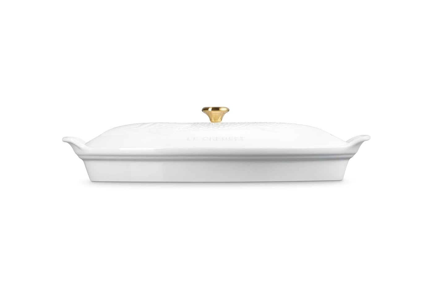 {"id":8028069593316,"title":"Le Creuset 1 7\/10 Qt. Fish Baker w\/Gold Knob - White","handle":"le-creuset-1-7-qt-fish-baker-w-gold-knob-white-71024-260-010-15-2","description":"\u003cp\u003eThe Fish Baker features a covered oval baking dish embossed with an elegant fish motif and brushed gold knob. A striking presentation from oven to table, it’s perfect not only for baking, roasting, steaming, and broiling all manner of fish recipes – but also for roasting and steaming vegetables and meat, bubbling casseroles, one dish meals and more. The ridges on the bottom of the baking dish keep food elevated for even cooking and browning, while the stoneware lid locks in moisture and keeps fish odors contained. Crafted from the finest quality stoneware to ensure food is cooked to perfection, the dish features a colorful glaze that is virtually nonstick for easy cleanup. - 71065-260-010-49-2 - 3 - B235\u003c\/p\u003e","published_at":"2025-10-10T15:55:46-04:00","created_at":"2023-09-06T16:05:36-04:00","vendor":"Le Creuset","type":"Baking Dishes","tags":["Brand_Le Creuset","Category_Bakers \u0026 Casseroles","Color_White","Country_","Customization_","ItemType_Baking Dishes","Sale_"],"price":13495,"price_min":13495,"price_max":13495,"available":true,"price_varies":false,"compare_at_price":15000,"compare_at_price_min":15000,"compare_at_price_max":15000,"compare_at_price_varies":false,"variants":[{"id":44138242572516,"title":"Default Title","option1":"Default Title","option2":null,"option3":null,"sku":"71065-260-010-49-2","requires_shipping":true,"taxable":true,"featured_image":null,"available":true,"name":"Le Creuset 1 7\/10 Qt. Fish Baker w\/Gold Knob - White","public_title":null,"options":["Default Title"],"price":13495,"weight":4536,"compare_at_price":15000,"inventory_quantity":3,"inventory_management":"shopify","inventory_policy":"deny","barcode":"843251112425","requires_selling_plan":false,"selling_plan_allocations":[]}],"images":["\/\/www.chefsarsenal.com\/cdn\/shop\/files\/51yzliigCaL._AC_SL1500.jpg?v=1694108086","\/\/www.chefsarsenal.com\/cdn\/shop\/files\/516xwncP1HL._SL1500.jpg?v=1761245415","\/\/www.chefsarsenal.com\/cdn\/shop\/files\/51WzJ5zFrlL._SL1500.jpg?v=1761245415","\/\/www.chefsarsenal.com\/cdn\/shop\/files\/51hNPVpgUtL._SL1500.jpg?v=1761245414","\/\/www.chefsarsenal.com\/cdn\/shop\/files\/71DDqblzfwL._SL1500_55f981af-92ee-43fa-90b6-faa99cb2c6a4.jpg?v=1761245415"],"featured_image":"\/\/www.chefsarsenal.com\/cdn\/shop\/files\/51yzliigCaL._AC_SL1500.jpg?v=1694108086","options":["Title"],"media":[{"alt":null,"id":50830829912292,"position":1,"preview_image":{"aspect_ratio":2.66,"height":564,"width":1500,"src":"\/\/www.chefsarsenal.com\/cdn\/shop\/files\/51yzliigCaL._AC_SL1500.jpg?v=1694108086"},"aspect_ratio":2.66,"height":564,"media_type":"image","src":"\/\/www.chefsarsenal.com\/cdn\/shop\/files\/51yzliigCaL._AC_SL1500.jpg?v=1694108086","width":1500},{"alt":null,"id":67019155570916,"position":2,"preview_image":{"aspect_ratio":1.5,"height":1000,"width":1500,"src":"\/\/www.chefsarsenal.com\/cdn\/shop\/files\/516xwncP1HL._SL1500.jpg?v=1761245415"},"aspect_ratio":1.5,"height":1000,"media_type":"image","src":"\/\/www.chefsarsenal.com\/cdn\/shop\/files\/516xwncP1HL._SL1500.jpg?v=1761245415","width":1500},{"alt":null,"id":67019155505380,"position":3,"preview_image":{"aspect_ratio":1.5,"height":1000,"width":1500,"src":"\/\/www.chefsarsenal.com\/cdn\/shop\/files\/51WzJ5zFrlL._SL1500.jpg?v=1761245415"},"aspect_ratio":1.5,"height":1000,"media_type":"image","src":"\/\/www.chefsarsenal.com\/cdn\/shop\/files\/51WzJ5zFrlL._SL1500.jpg?v=1761245415","width":1500},{"alt":null,"id":67019155538148,"position":4,"preview_image":{"aspect_ratio":1.5,"height":1000,"width":1500,"src":"\/\/www.chefsarsenal.com\/cdn\/shop\/files\/51hNPVpgUtL._SL1500.jpg?v=1761245414"},"aspect_ratio":1.5,"height":1000,"media_type":"image","src":"\/\/www.chefsarsenal.com\/cdn\/shop\/files\/51hNPVpgUtL._SL1500.jpg?v=1761245414","width":1500},{"alt":null,"id":67019155603684,"position":5,"preview_image":{"aspect_ratio":1.27,"height":1181,"width":1500,"src":"\/\/www.chefsarsenal.com\/cdn\/shop\/files\/71DDqblzfwL._SL1500_55f981af-92ee-43fa-90b6-faa99cb2c6a4.jpg?v=1761245415"},"aspect_ratio":1.27,"height":1181,"media_type":"image","src":"\/\/www.chefsarsenal.com\/cdn\/shop\/files\/71DDqblzfwL._SL1500_55f981af-92ee-43fa-90b6-faa99cb2c6a4.jpg?v=1761245415","width":1500}],"requires_selling_plan":false,"selling_plan_groups":[],"content":"\u003cp\u003eThe Fish Baker features a covered oval baking dish embossed with an elegant fish motif and brushed gold knob. A striking presentation from oven to table, it’s perfect not only for baking, roasting, steaming, and broiling all manner of fish recipes – but also for roasting and steaming vegetables and meat, bubbling casseroles, one dish meals and more. The ridges on the bottom of the baking dish keep food elevated for even cooking and browning, while the stoneware lid locks in moisture and keeps fish odors contained. Crafted from the finest quality stoneware to ensure food is cooked to perfection, the dish features a colorful glaze that is virtually nonstick for easy cleanup. - 71065-260-010-49-2 - 3 - B235\u003c\/p\u003e"}